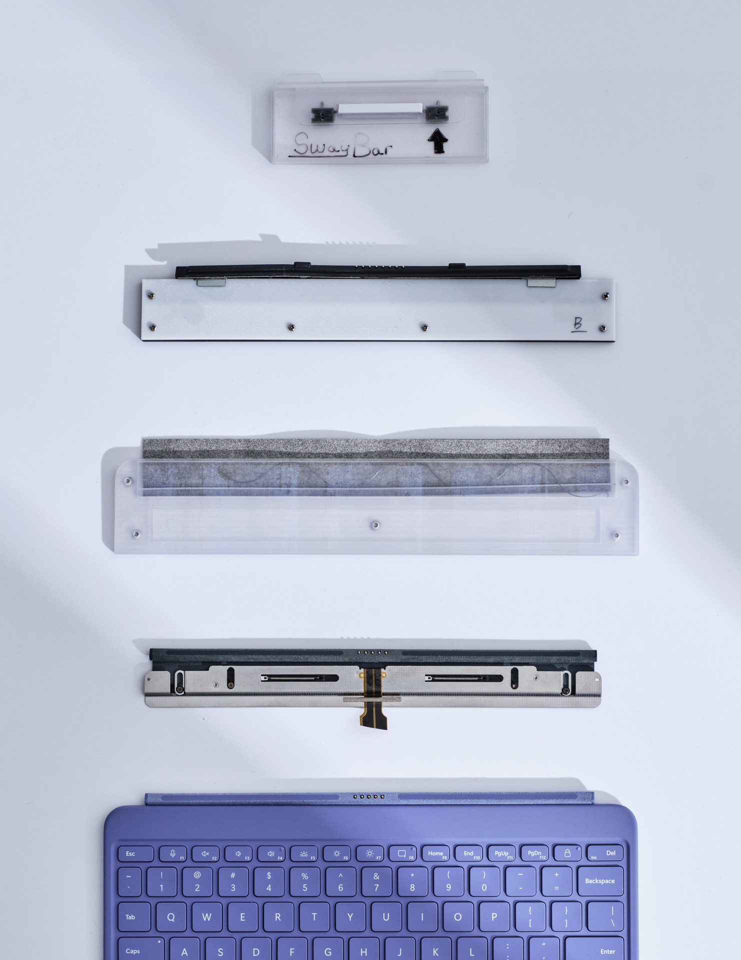 Цвет по-разному отражается на разных поверхностях, особенно на алюминии, который добавляет изысканности, но при этом уникально отражает свет и передаёт оттенки. «Главное — найти баланс», — объясняет Ясински. «Слишком тяжёлый — и он становится полярным. Слишком лёгкий — и серый оттенок исходной алюминиевой подложки начинает проступать». Чтобы добиться элегантного, современного вида нашей новой 12-дюймовой клавиатуры Surface Pro, потребовалось тщательно продумать выбор цвета и материалов. Ткани, клавиши и надписи прошли бесчисленное количество итераций, стремясь к чёткости, эстетической сдержанности и доступности. Каждая деталь служит удобству использования, не отвлекая и всегда дополняя его.