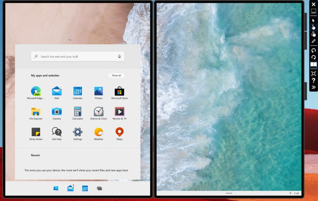 Таким образом, меню «Пуск» — это очень простой лаунчер, и это означает, что запутанная панель запуска уходит в прошлое, и я думаю, что это хорошо для Windows 10X. Мне нравится чистый пользовательский интерфейс, особенно с красочными значками, которые большинство приложений получат в Windows 10 X.