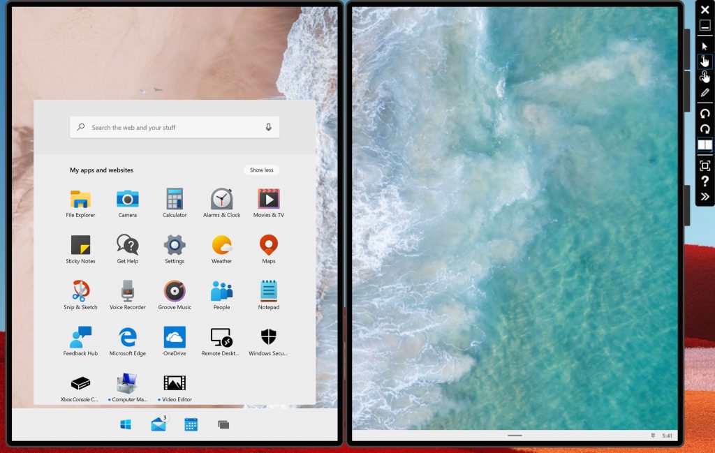 Мы также можем запустить два приложения одновременно на одном экране, но вы, возможно, заметили, что вы не можете запускать приложения в каскадных окнах, и это по замыслу Microsoft говорит, что большинство устройств на базе Windows 10X будут иметь маленькие экраны.