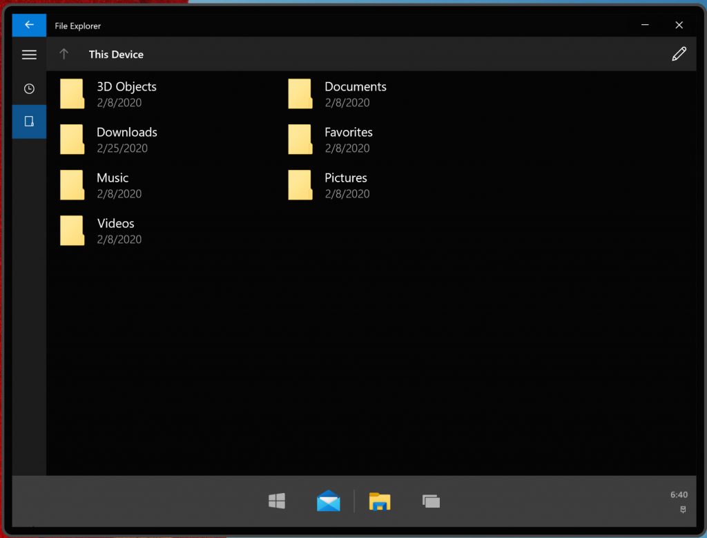 Теперь посмотрим на файловый менеджер по умолчанию в Windows 10X, это проводник файлов, который есть в Windows 10 для мобильных устройств.