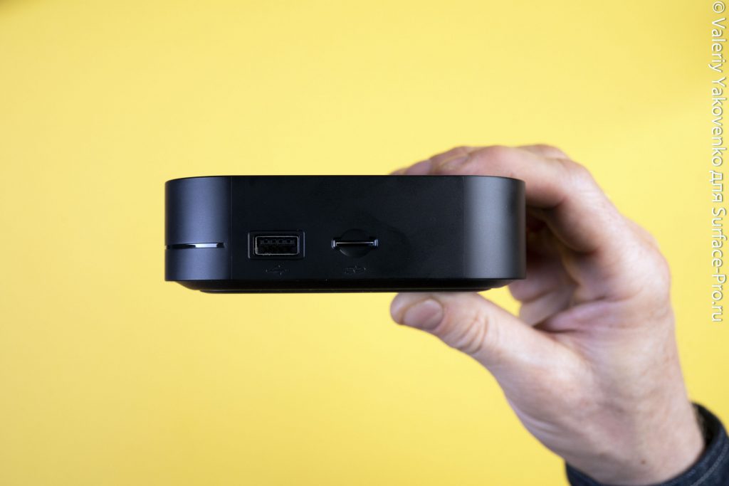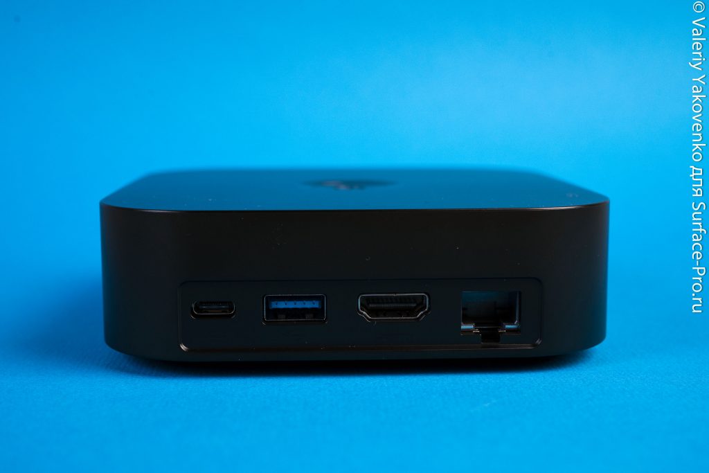 На задней панели находятся порт Ethernet 10/100, видеовыход HDMI, один порт USB 3.2 Type-A и порт USB-C для 30-ваттного разъема питания. На правой стороне назодится порт USB 2.0 и слот для карты памяти формата microSD. Вы можете выходить в интернет с помощью Wi-Fi 5 и подключаться к периферийным устройствам с помощью Bluetooth 5.0. Мини-компьютер работает на чипсете Snapdragon 7c с тактовой частотой 2,4 ГГц, имеет 4 ГБ оперативной памяти и 64 ГБ встроенной памяти eMMC. Из коробки устройство поставляется с предустановленной системой Windows 10, но сразу же обновляется до Windows 11.