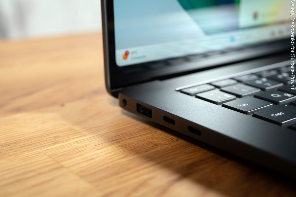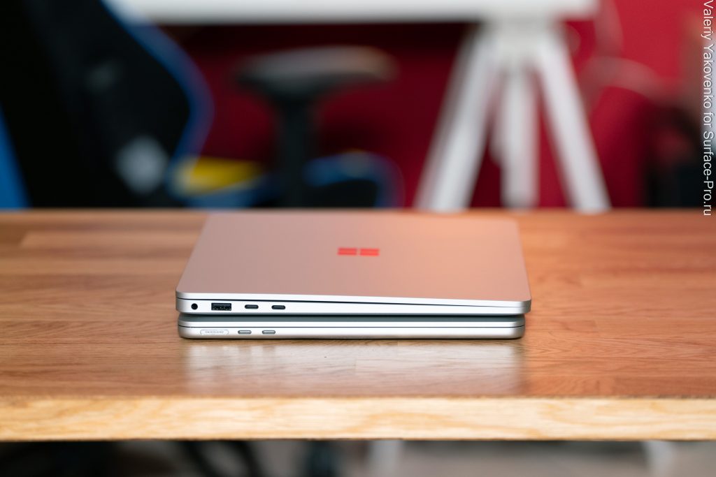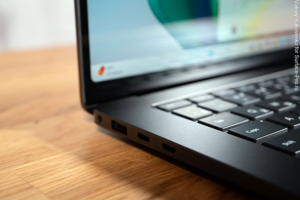 Порты также были изменены. На левой стороне расположены два порта USB4 Type-C, один порт USB-A 3.2 Gen 1 и разъем для наушников 3,5 мм. Справа находятся фирменный магнитный порт для зарядки Surface Connect и устройство для чтения microSD-карт (только в 15-дюймовой модели). Microsoft сохранила собственный порт для зарядки, что позволяет выбирать между ним и зарядкой через USB-C.