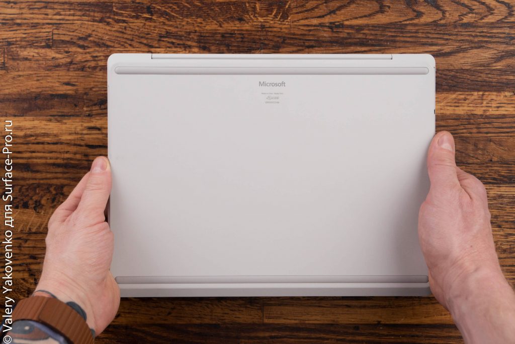 Microsoft охлаждает чип с помощью единственного вентилятора и вентиляционной системы, спрятанной рядом с дисплеем. Ноутбук никогда не нагревался (пик составляет 43 градуса по Цельсию), и, хотя вы можете слышать вентилятор во время игр или обновления Windows, шум не назойлив. Он имеет приятный свистящий эффект без высоких шумов. Пластиковое дно обеспечивает охлаждение ноутбука с минимальной теплоотдачей и поэтому его комфортно держать на коленях.