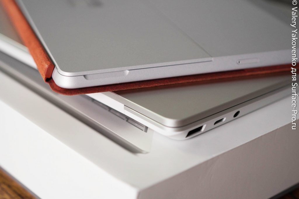 Стандартных портов всего три и все на левой стороне: Type-A (10 МБ / с), Type-C и одно гнездо для наушников / микрофона. Type-C поддерживает вывод для подключения дисплея, передачу данных и быструю зарядку (до 60 Вт). Справа находится порт зарядки Surface Connect, который также поддерживает быструю зарядку.