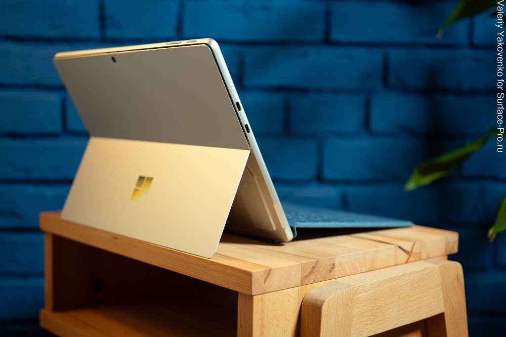 По бокам корпуса есть два порта Type-C с поддержкой USB4 и магнитный порт Surface Connect для небольшого 39-ваттного зарядного устройства. К сожалению, с переходом на новую архитектуру пропала поддержка Thunderbolt 4, так что обязательно имейте это ввиду.
