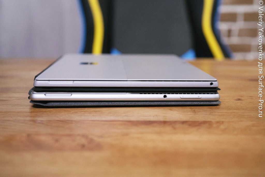 В этом году Microsoft заменил магний на алюминий в корпусе и добавил новую расцветку Graphite. Результат? В то время как предыдущие черные Surface Pro собирали все отпечатки пальцев — на новом они правктически незаметны. У нас на тесте версия в платиновом цвете — на ней отпечатков не заметно совсем!