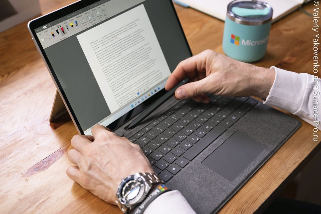 Мне всегда нравилось печатать на клавиатуре Surface Pro, и здесь нечего добавить. Угол наклона, ход клавиш, подсветка — все это очень приятно.