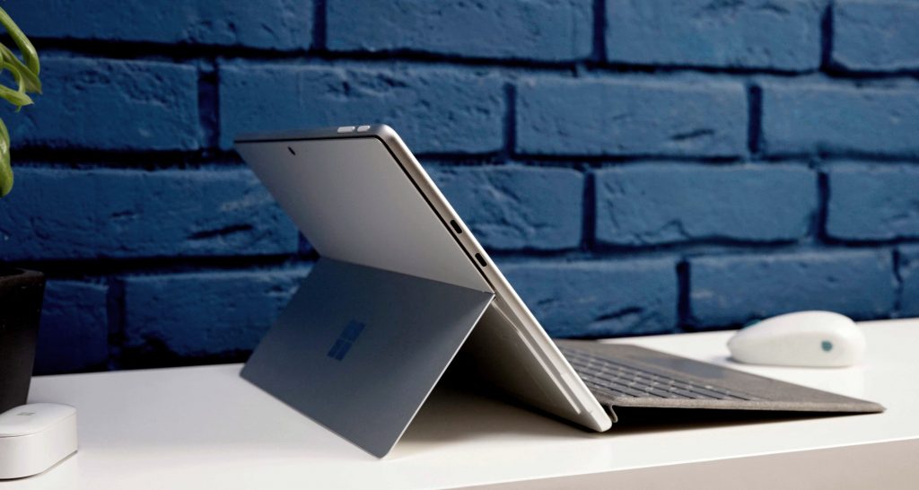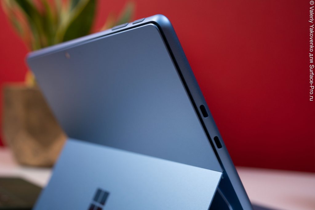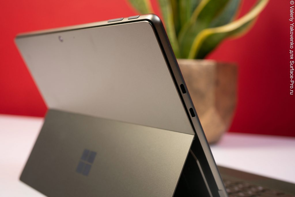 Увы Pro 9 первый планшет Microsoft без 3,5-мм аудиоразъема так что пора обзавестись беспроводными наушниками. Как и Pro 8, Pro 9 получил два порта USB-C с поддержкой Thunderbolt 4 и проприетарный порт Surface Connect. Pro 9 с 5G, из-за ARM процессора, получил два USB-C 3.2, слот NanoSIM и порт Surface Connect. Расположение портов и клавиш изменилось, порты USB-C переехали на левую сторону, клавиша выключения и регулировки громкости теперь на верхней грани – так гораздо удобней.
