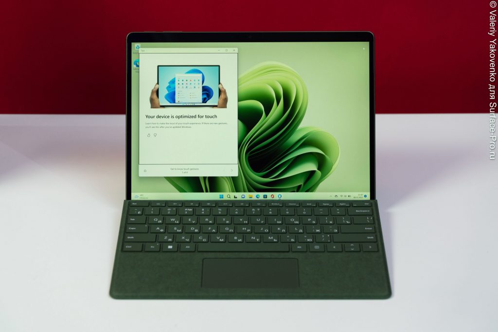 Вживую новые цвета смотрятся намного интересней, чем на рендерах. Зеленый Forest на самом деле больше похож на патинированную бронзу. Синий Sapphire немного темней, чем Ice Blue, знакомый нам по Surface Laptop. Что касается клавиатур, то зеленая — это темный цвет хаки, а синяя похожа на вытертую джинсу.