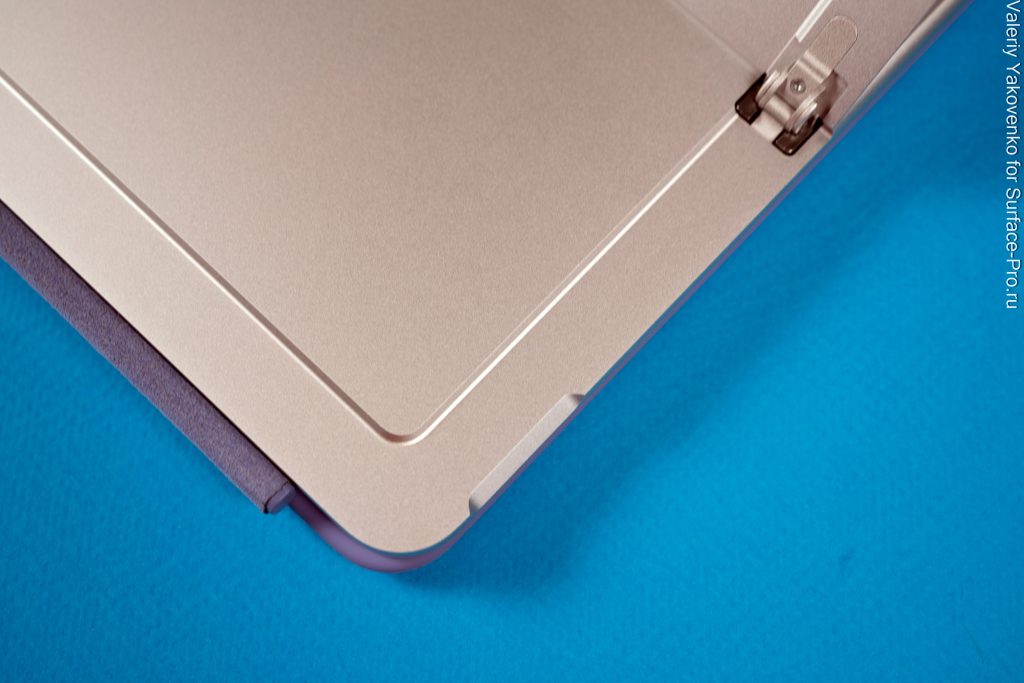 Клавиатура имеет подсветку клавиш и не тактильный тачпад. Жаль, но механические тачпады намного дешевле. В целом несмотря на то, что она меньше привычной клавиатуры 13-дюймового Surface Pro, она прекрасно помещается и на коленях, и на столе, позволяя печатать с полным комфортом.