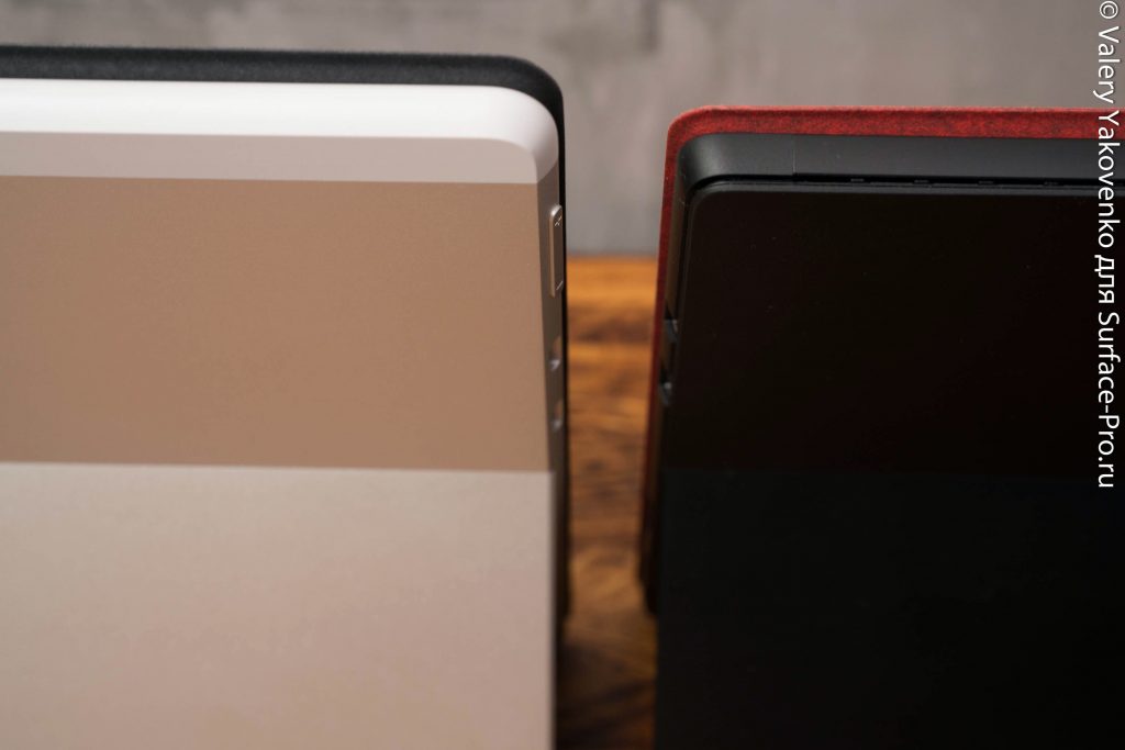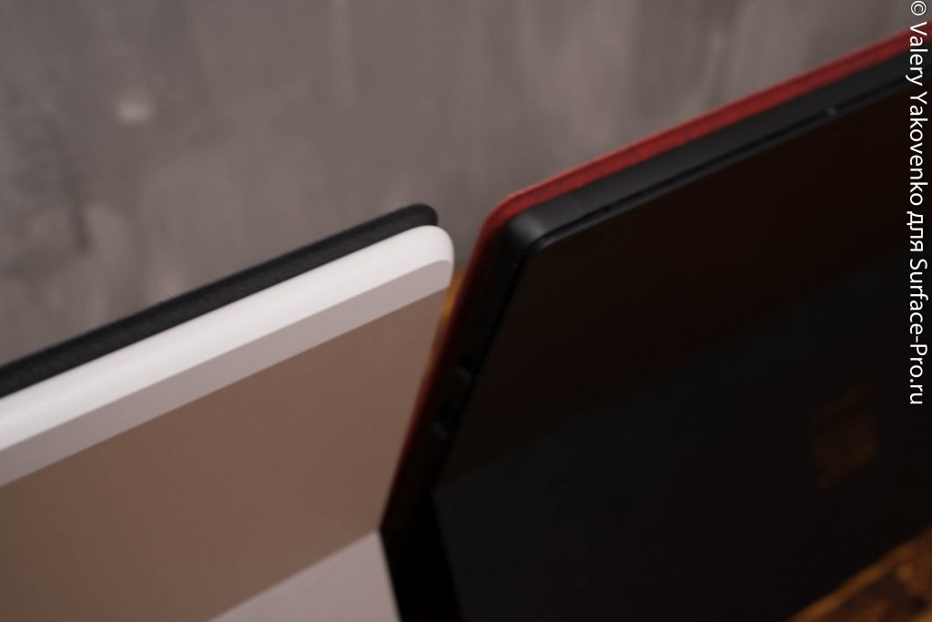 При толщине всего 7,3 мм Surface Pro X — очень похож на iPad Pro — прочный, металлический, премиальный и компактный. Для сравнения, Surface Pro 7 толще — 8,5 мм. Однако вес обоих устройств примерно равен — 775 граммов.