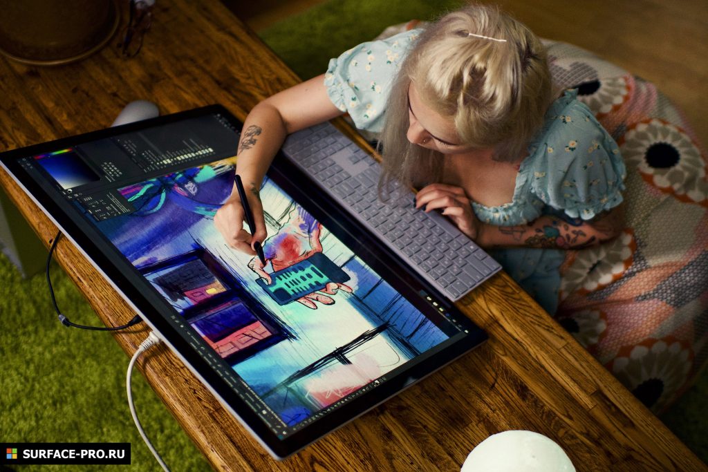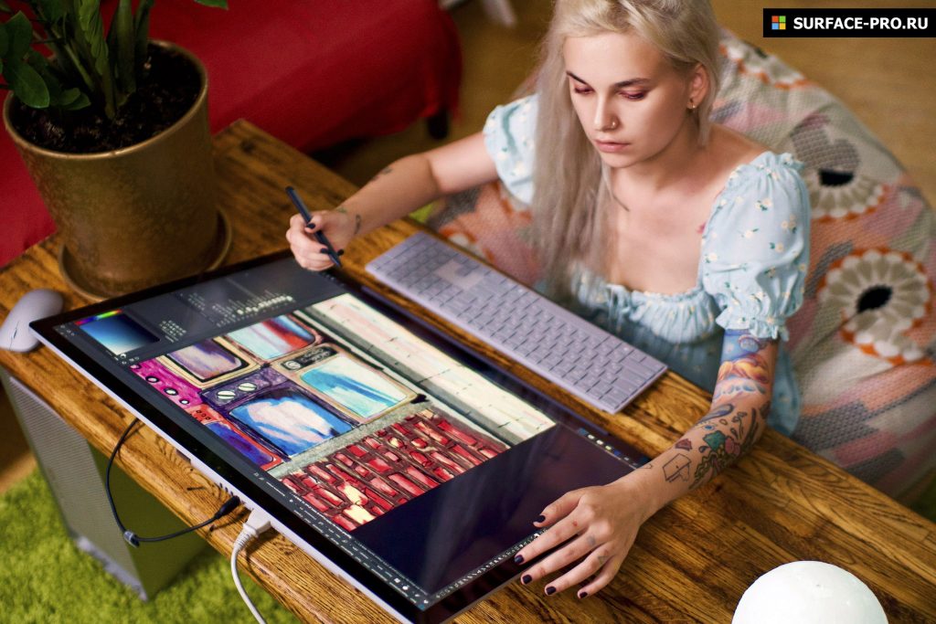 Главное преимущество Surface Studio 2 заключается в том, что это компьютер «все-в-одном» с гигантским сенсорным экраном, поддерживающим работу со стилусом, на котором можно и удобно рисовать.