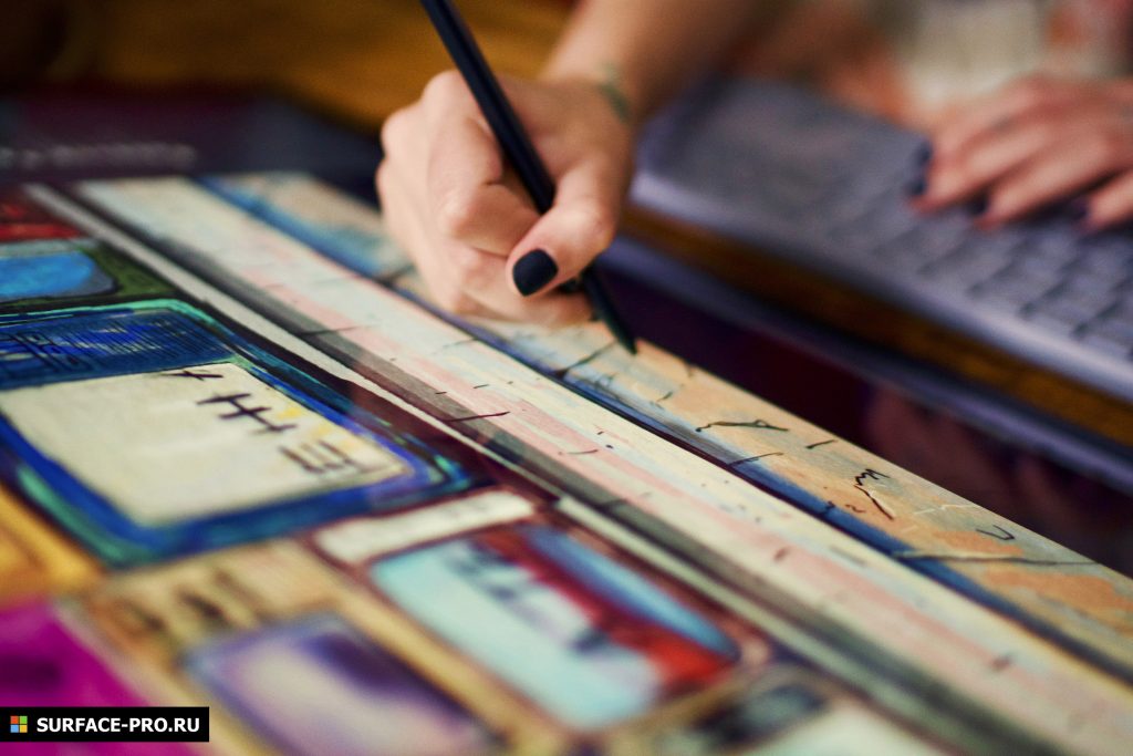 Для обзора мы пригласили художницу Настю Гвоздеву и предложили ей попробовать поработать на Surface Studio 2, а затем поделиться впечатлениями. Настя — аниматор-мультипликатор, среди ее работ, например, мультипликационный фильм про Джима Джармуша, а недавно она даже снялась в рекламе Сбербанка. Она преподает рисование, ведет блог об анимации, рисует на заказ и сейчас работает над клипом для группы Саммер Кома — работу над кадрами именно из будущего клипа вы и увидите в ролике.