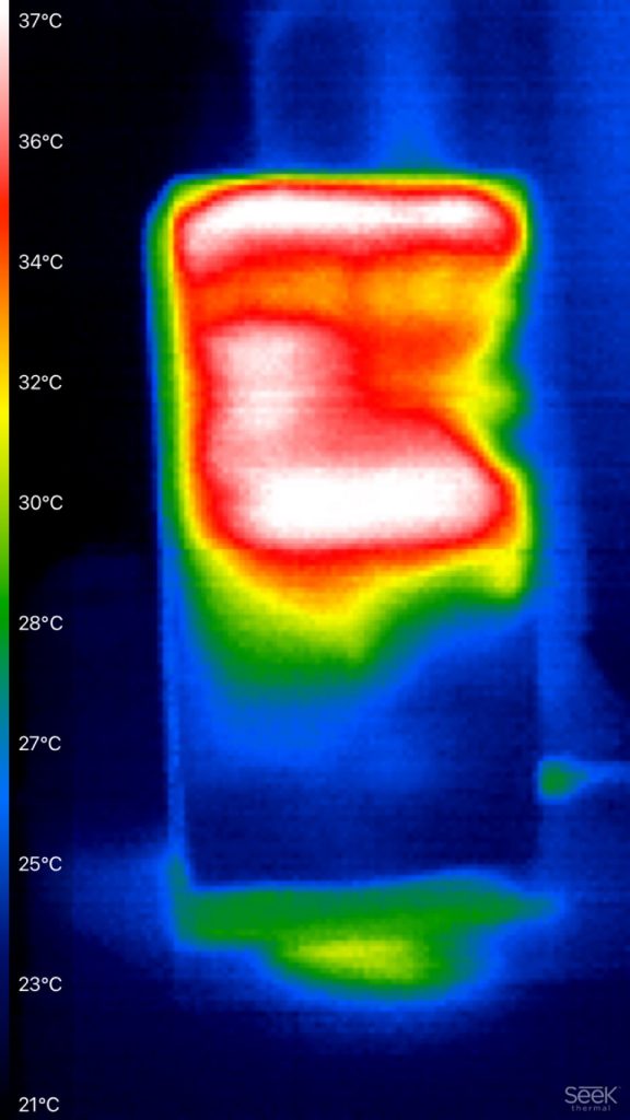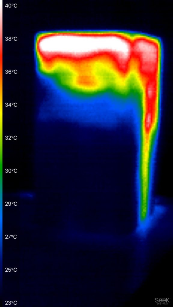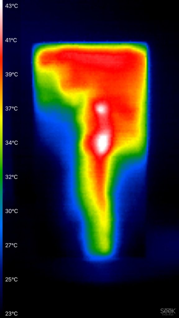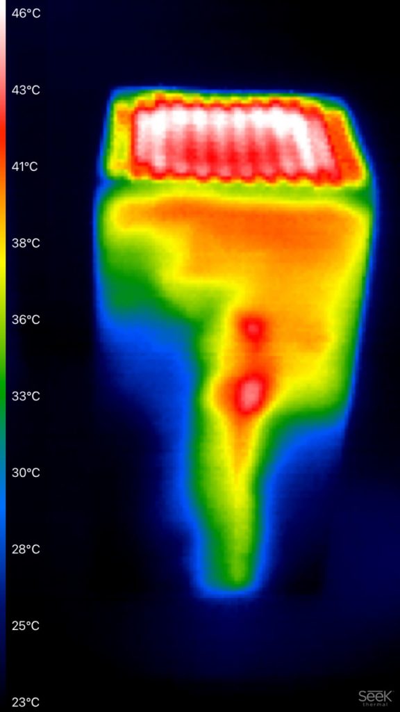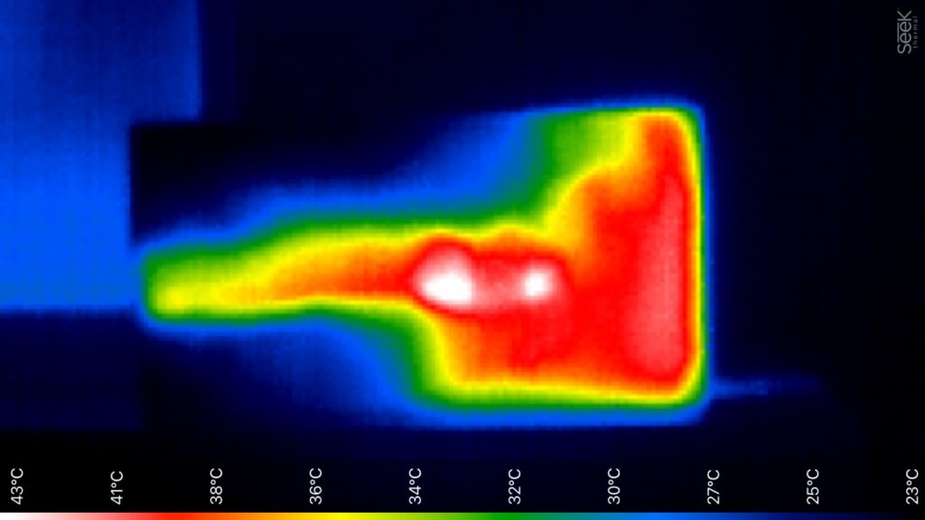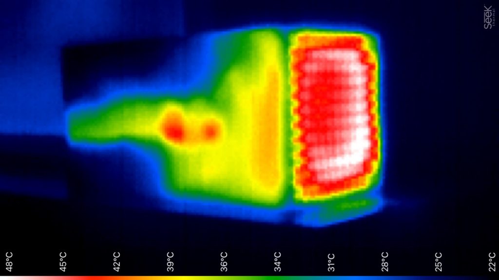 Как вы можете видеть на снимках, сделанных с помощью тепловизора, Xbox Series X греется не очень сильно. Для сравнения, Xbox One X и PS4 Pro не только нагреваются, но и жутко шумят в играх, которые максимально раскрывают характеристики консолей. Высокотребовательные тайтлы для Xbox Series X, такие как Cyberpunk 2077, разогревают корпус консоли всего до 50°C — для системы с производительностью 12 терафлопс это очень круто. А при запуске более старых игр для Xbox One температура еще меньше — около 35°C.