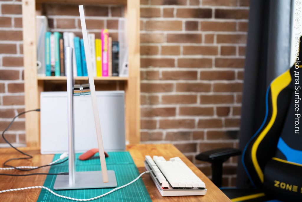 Но мы упоминали, как красиво выглядит этот дисплей в целом? Благодаря соотношению экрана к корпусу 94% и минималистичному внешнему виду (на самом деле основной материал — пластик, но, по крайней мере, подставка регулирующаяся, как по наклону, так и по высоте и шарнир — изготовлены из металла), он во многом похож на относительно доступный дисплей, который пользователи Mac хотели бы получить от Apple, а пользователи Surface от Microsoft. Для всех остальных это неплохой IPS-монитор с соотношением сторон 3: 2 с несколькими досадными недостатками.