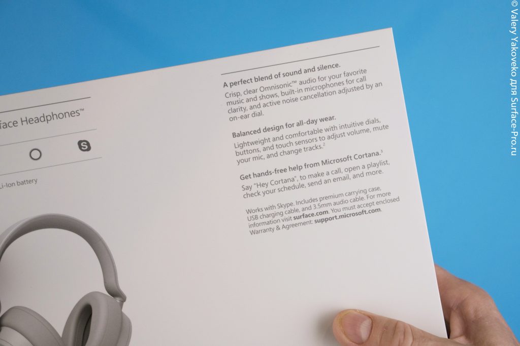 | Батарея | До 15 часов (воспроизведение музыки через Bluetooth, Active Noise Cancellation (ANC) включен, Cortana включена) До 50 часов (в режиме ожидания, Bluetooth выключен, ANC включен) |