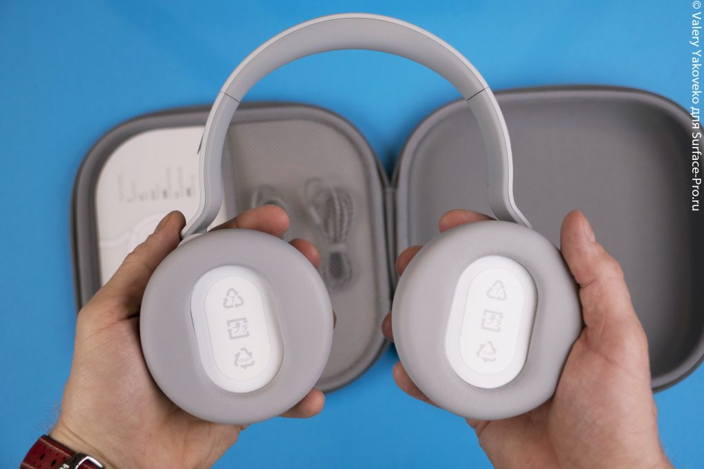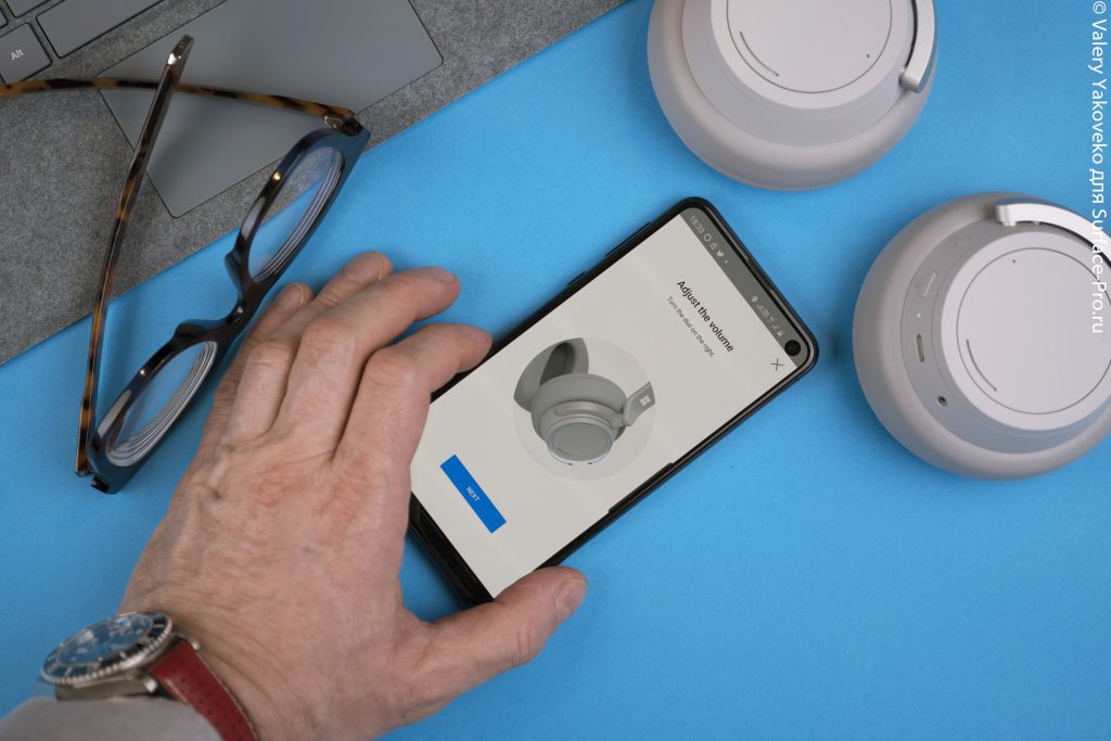 Правый амбушюр наушников Surface действует как гигантская ручка регулировки громкости, а левый контролирует шумоподавление, предоставляя пользователям 13 различных уровней подавление окружающего звука. Исполнение — идеально. Surface Headphones — это самые удобные наушники, в том числе, по сравнению с Sony. Кольца регулировки очень удобные: мягкие, точные и приятные в использовании по сравнению с физическими кнопками или настройки с помощью приложения.
