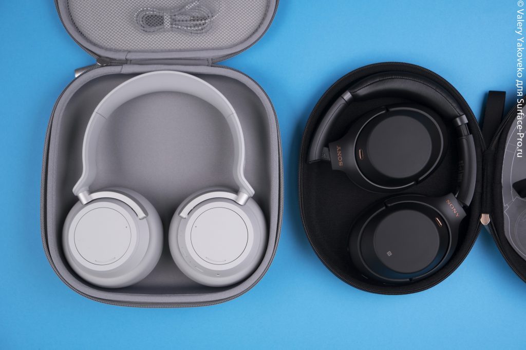 По сравнению с Sony, амбушюры Surface Headphones имеют подушки большего размера, главным образом из-за того, что они круглой формы. Подушка похожего типа находится под оголовьем, что позволяет комфортно использовать Surface Headphones в течение продолжительного времени.