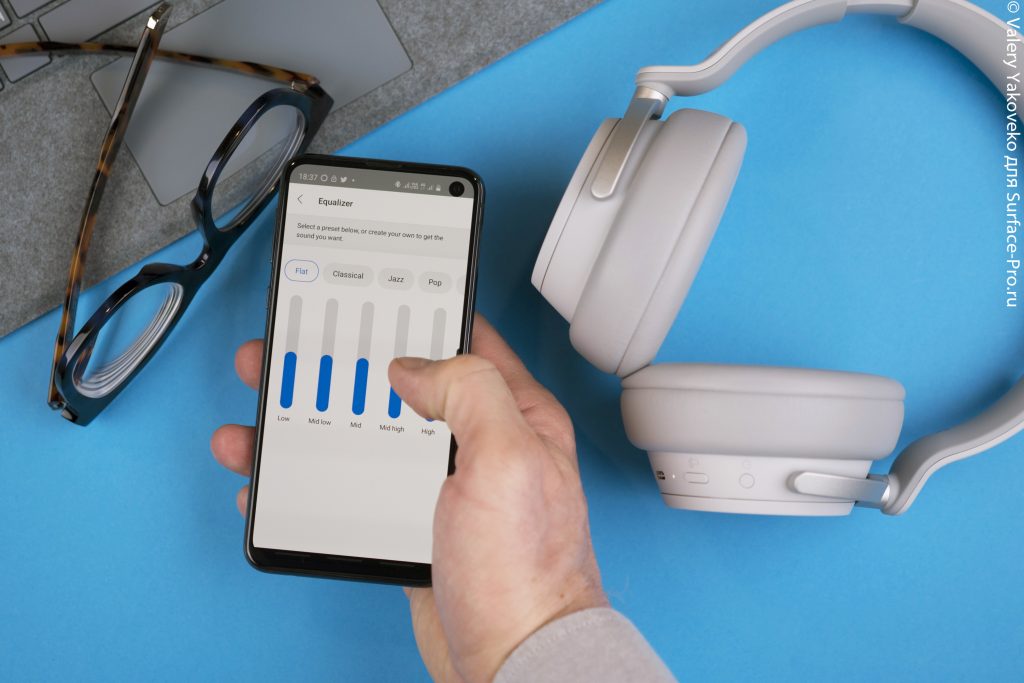 При разговоре — шум от внешнего ветра подавляется отлично, но опять же у Sony более утопленные микрофоны, которые помогают предотвратить влияние ветра. То же самое касается общественных мест с большим количеством говорящих людей и фоновым шумом. Наушники Surface отлично снижают этот шум, и возможность регулировать шумоподавление с тонким управлением удивительна (большинство наушников с активным шумоподавлением позволяют только включать или выключать его).